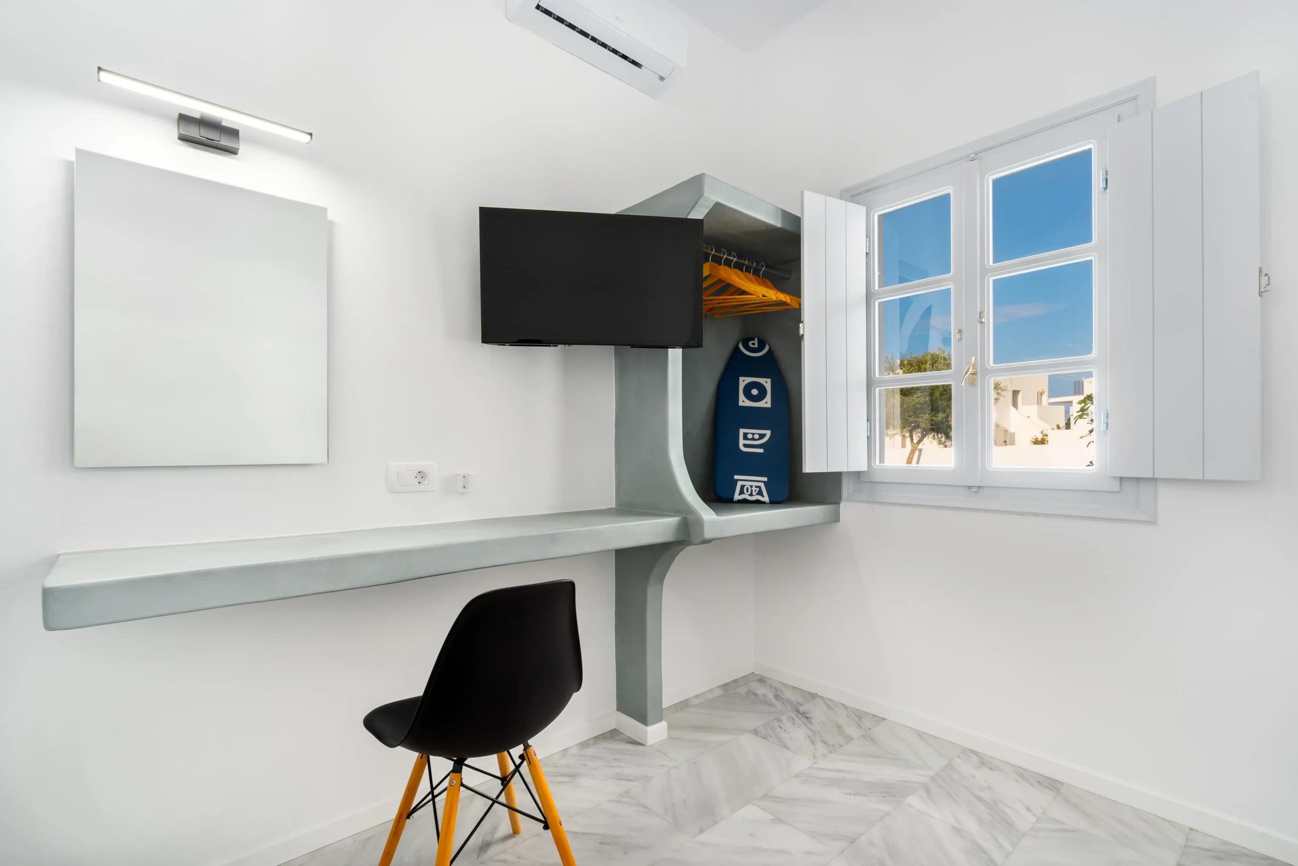 You’ll be just a 5-minute walk from Kamari Beach and its lively promenade. A supermarket, coffee shops, restaurants, bars, and local shops are all within easy walking distance, making your stay effortless from the moment you arrive.